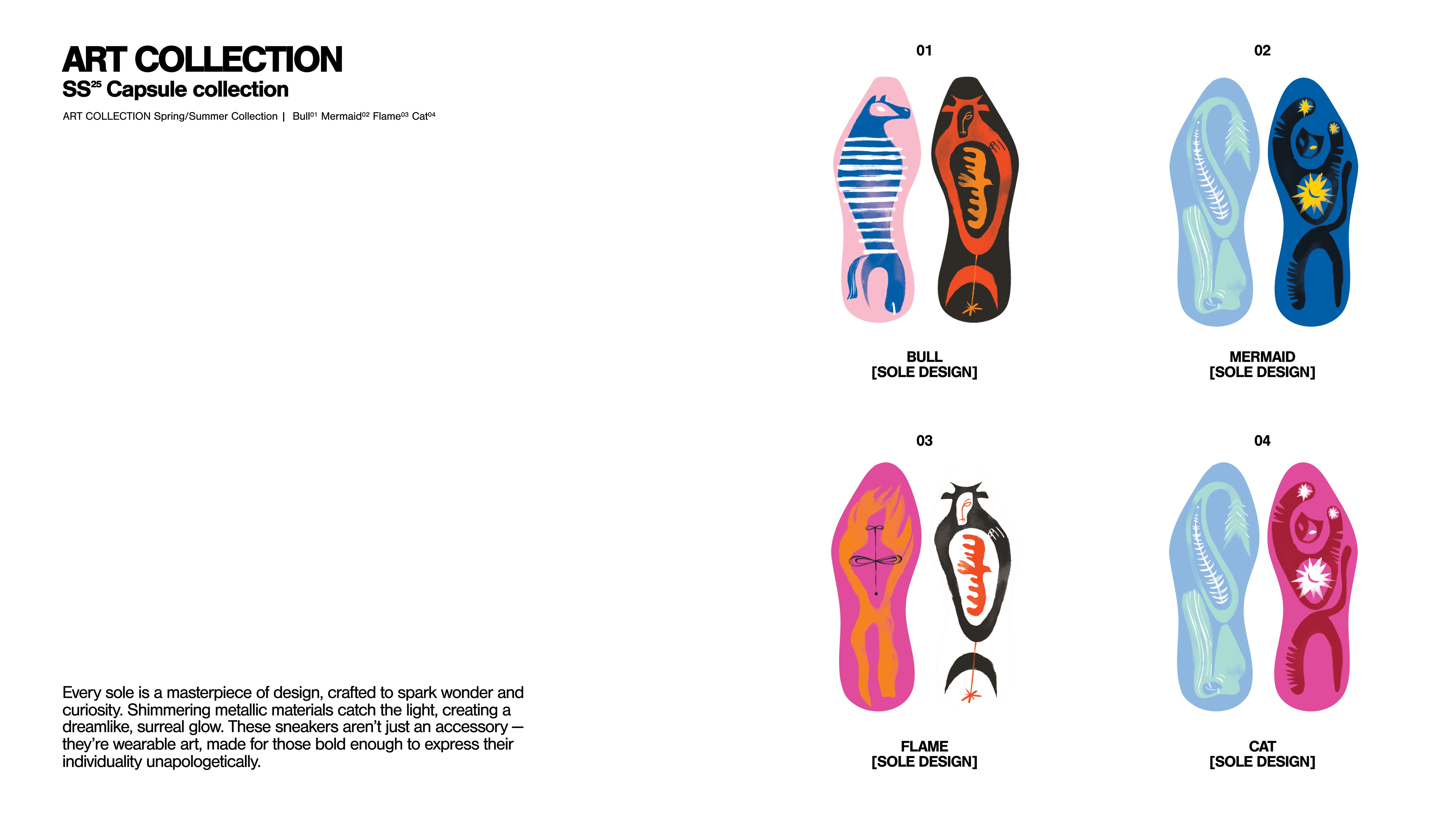 Surreal Dance, a limited-edition collection, redefines the boundaries of imagination and craftsmanship. Designed by Gonzalo Muiño, renowned for his ability to weave narratives through design, it transforms the base of each sneaker into a surreal canvas. His art tells stories of movement and dreams, where four extraordinary creatures take center stage.