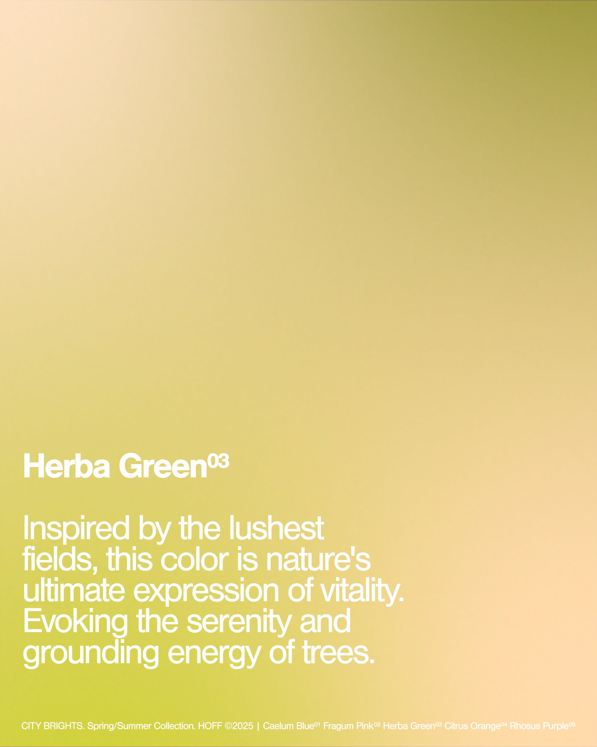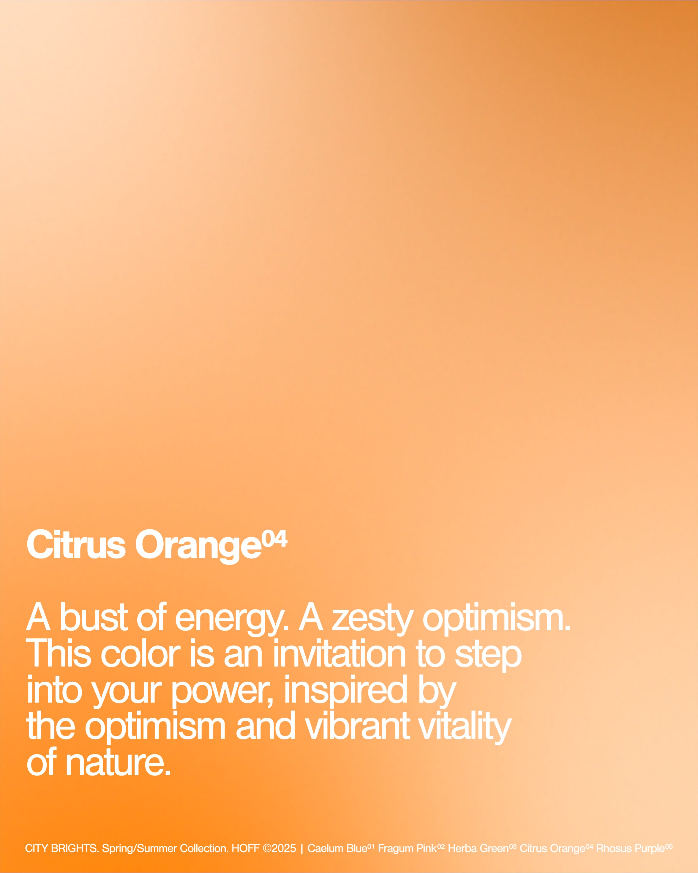 The most vibrant colors of nature inspire our iconic silhouette: from the energetic Citrus Orange to the serene shade of Caelum Blue.