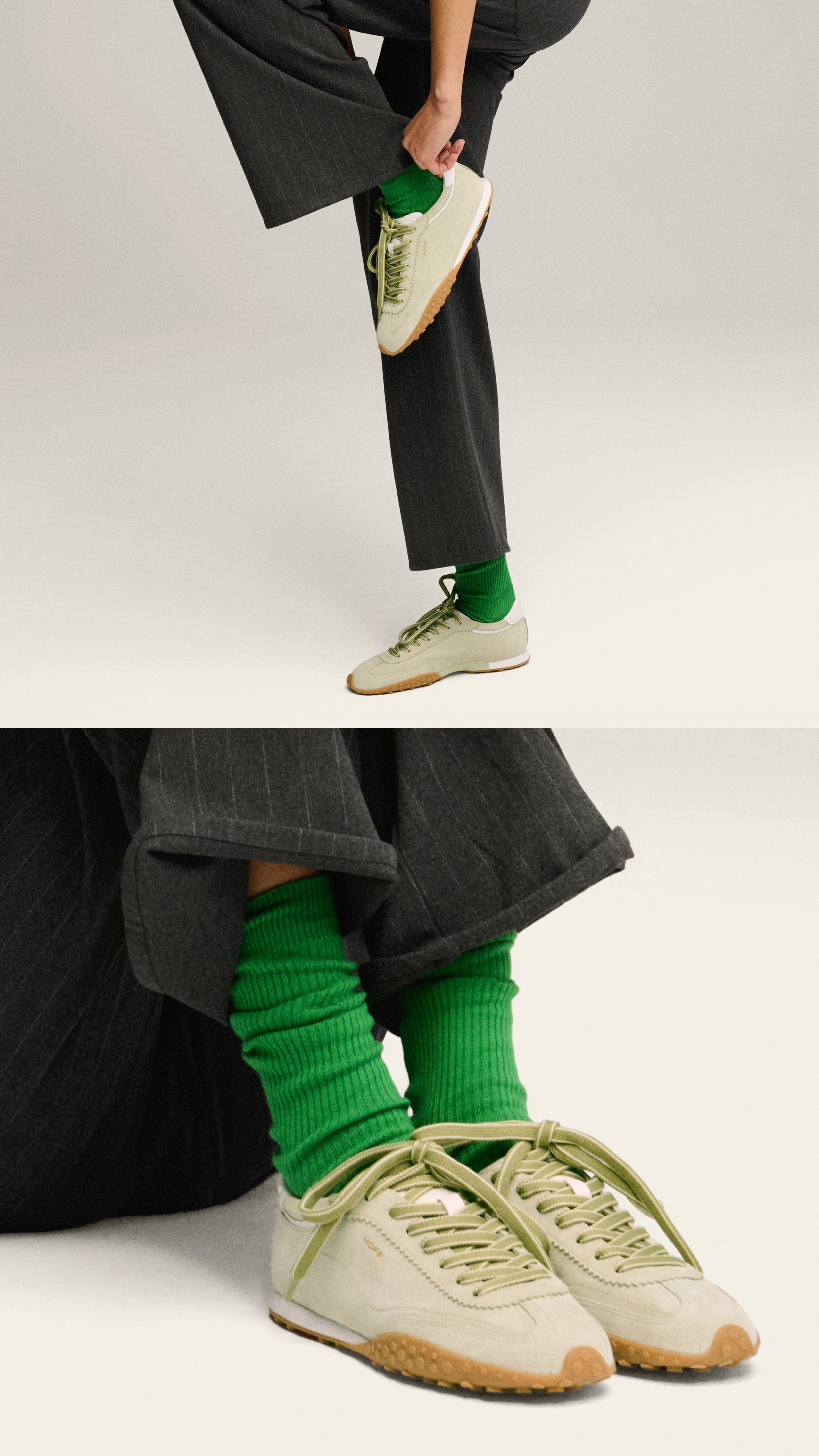 Discover the ultra-light Bridge silhouette with Eugenia López-Fonta. Our iconic ‘ballet runner’ is reimagined in a palette of soft acid tones fused in a structure that combines mesh fabric with suede.