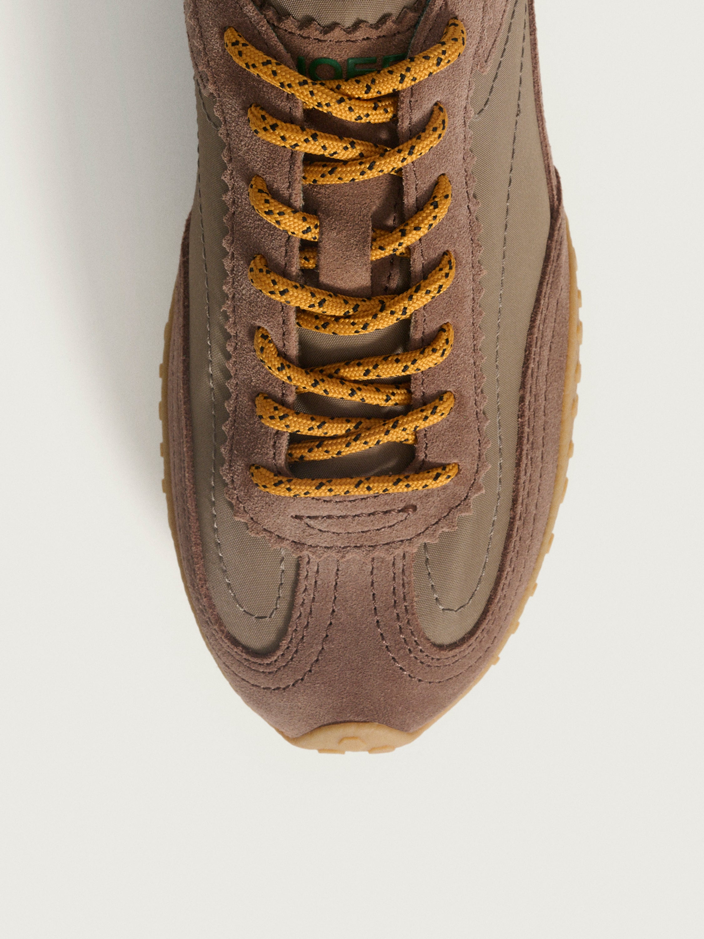 Baskets en combinaison de matériaux. Partie arrière de couleur blanche avec un détail logo. Semelle Phylon crantée pour une meilleure adhérence. Fermeture à lacets ton sur ton.