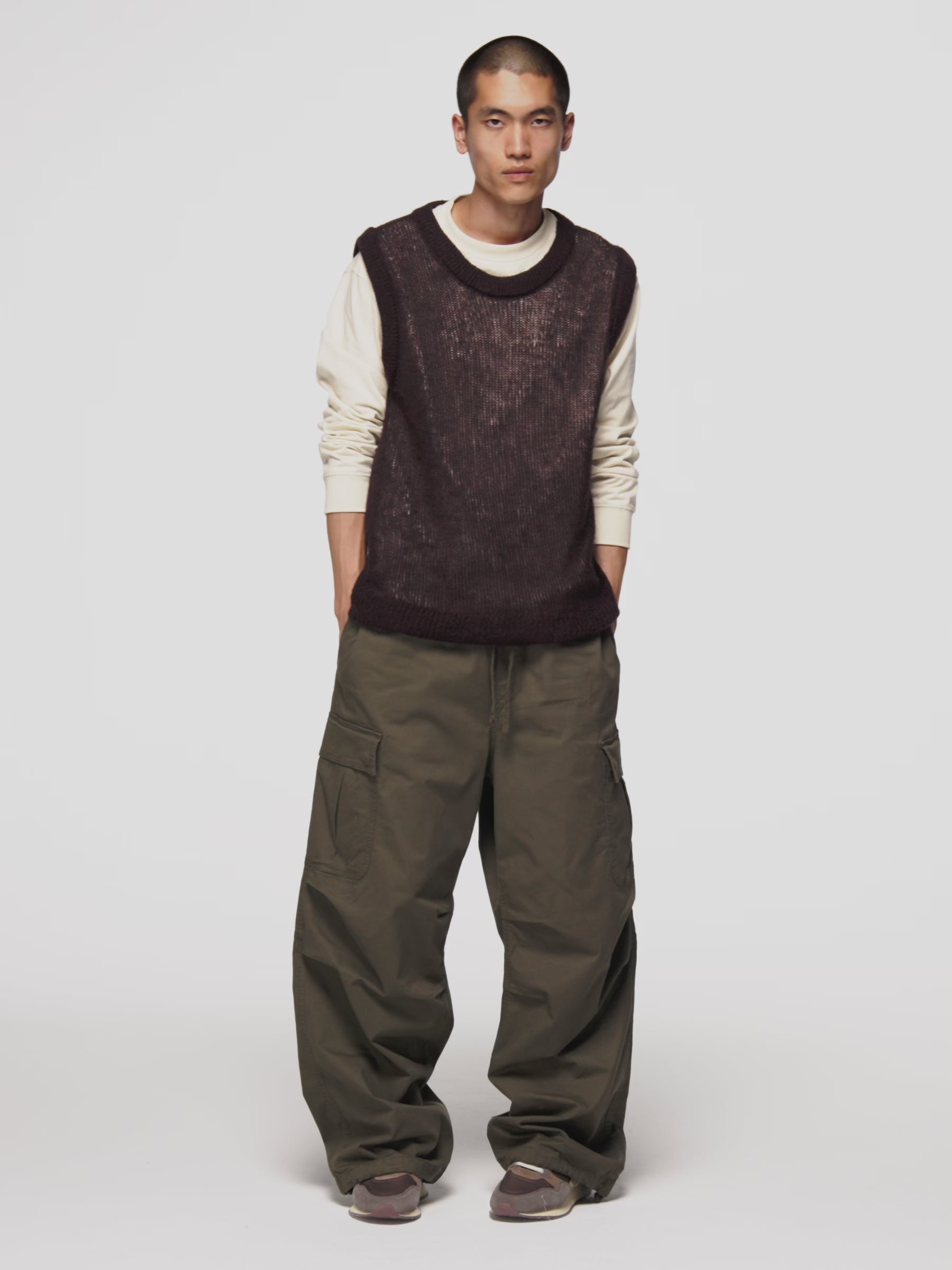 Sneaker en combinaison de matériaux et de couleurs. Semelle type gaufre pour plus de traction. Fermeture par lacets.