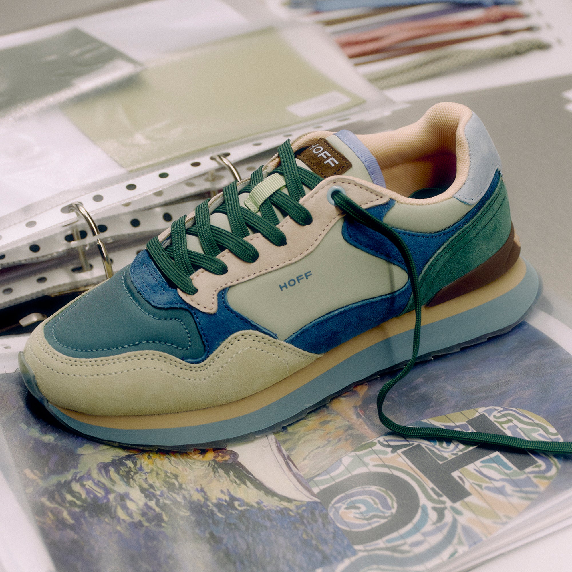 Nous vous présentons le design de Macarena Yagüe, étudiante et gagnante du concours HOFF x Regent's University London. Inspirée par l'œuvre «The White Boat», Macarena a capturé sa vision sur le modèle iconique CITY pour créer cette sneaker. Cette édition limitée combine du daim, du tissu et du caoutchouc dans des tons de vert et de bleu. La semelle imprimée lui donne une touche inégalée. Parfait pour marcher confortablement grâce à la semelle intérieure Memory-Foam®. Disponible exclusivement en ligne et dans notre boutique de Londres.