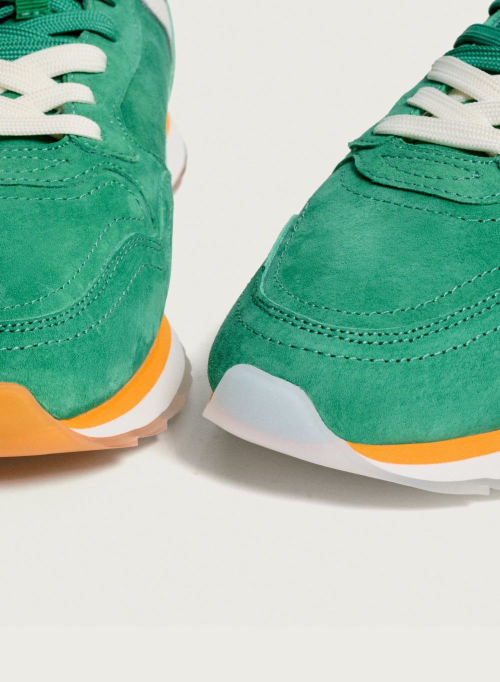 La sneaker VIRIDIS WOMAN de notre gamme célèbre les athlètes qui vont au-delà de la réalisation d'objectifs ; ils redéfinissent les limites du possible. Ce modèle résume l’essence du dynamisme et du style. Conçu en cuir et présenté dans une palette vibrante de verts profonds avec des détails jaune doré, il offre un design qui peut rehausser n'importe quelle tenue, du denim le plus décontracté aux imprimés.
