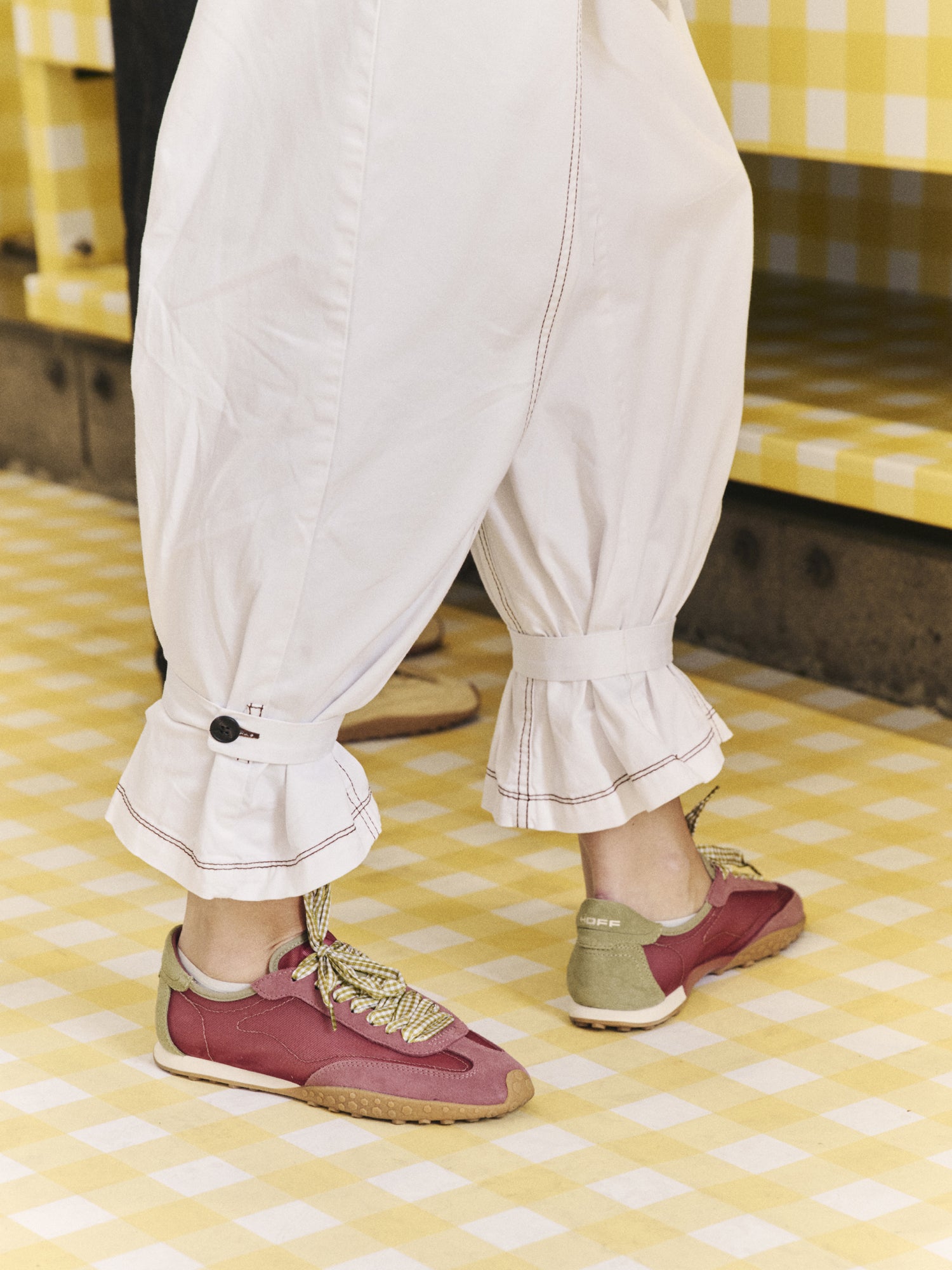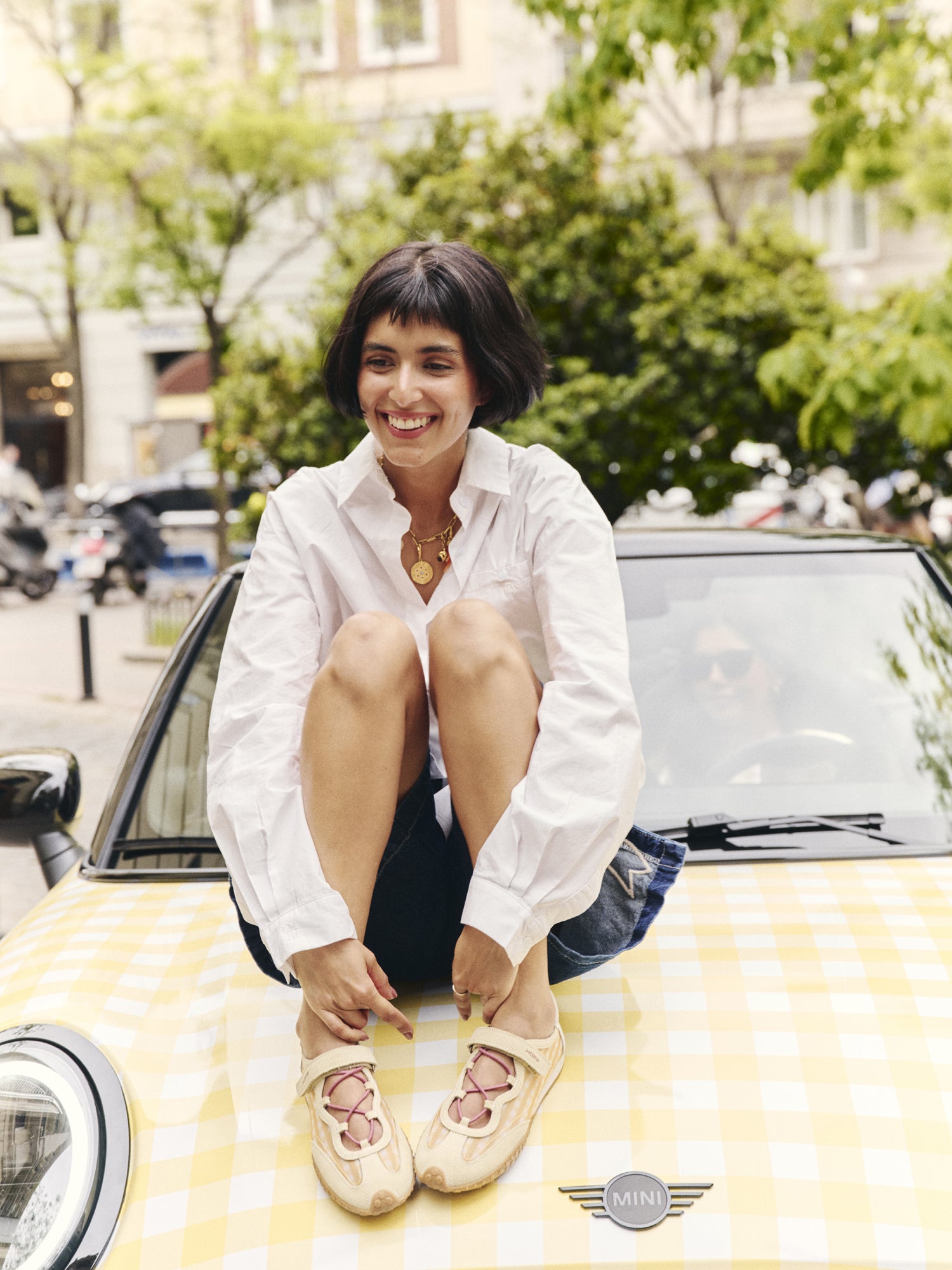 Include due paia di lacci — lisci e vichy — per un look pulito e versatile.